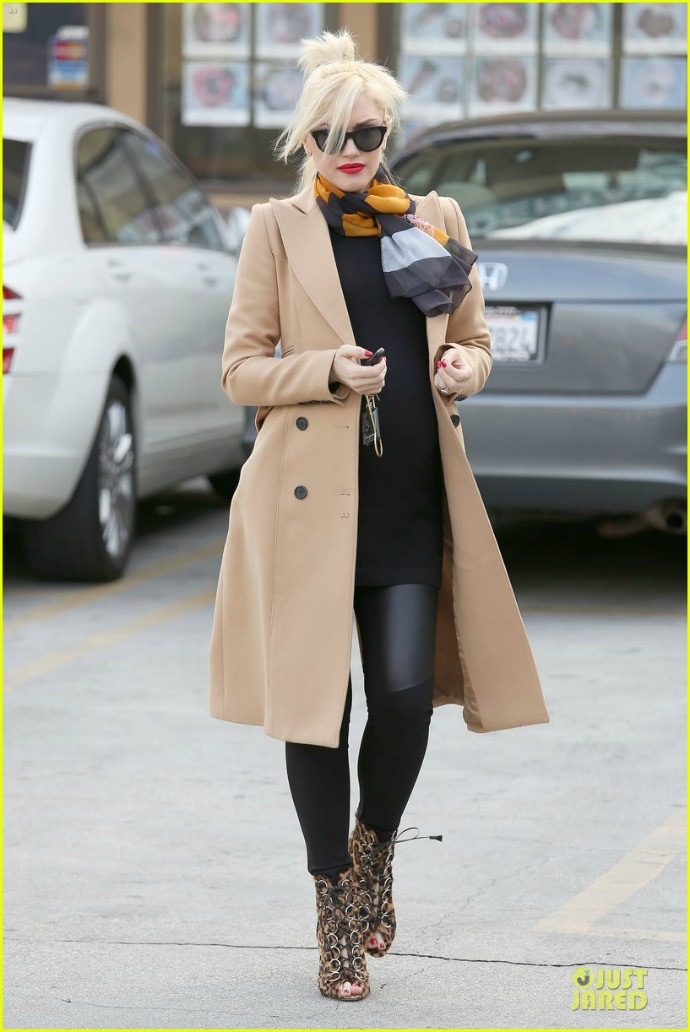 Soccer Mom, Gwen Stefani is one of my favorite to watch (check the previous relevant post here). Love her Rocker yet very Feminine style. She nailed it again this past weekend running errands in L.A. wearing heeled leopard lace-up booties and leather leggings, while being very very pregnant.